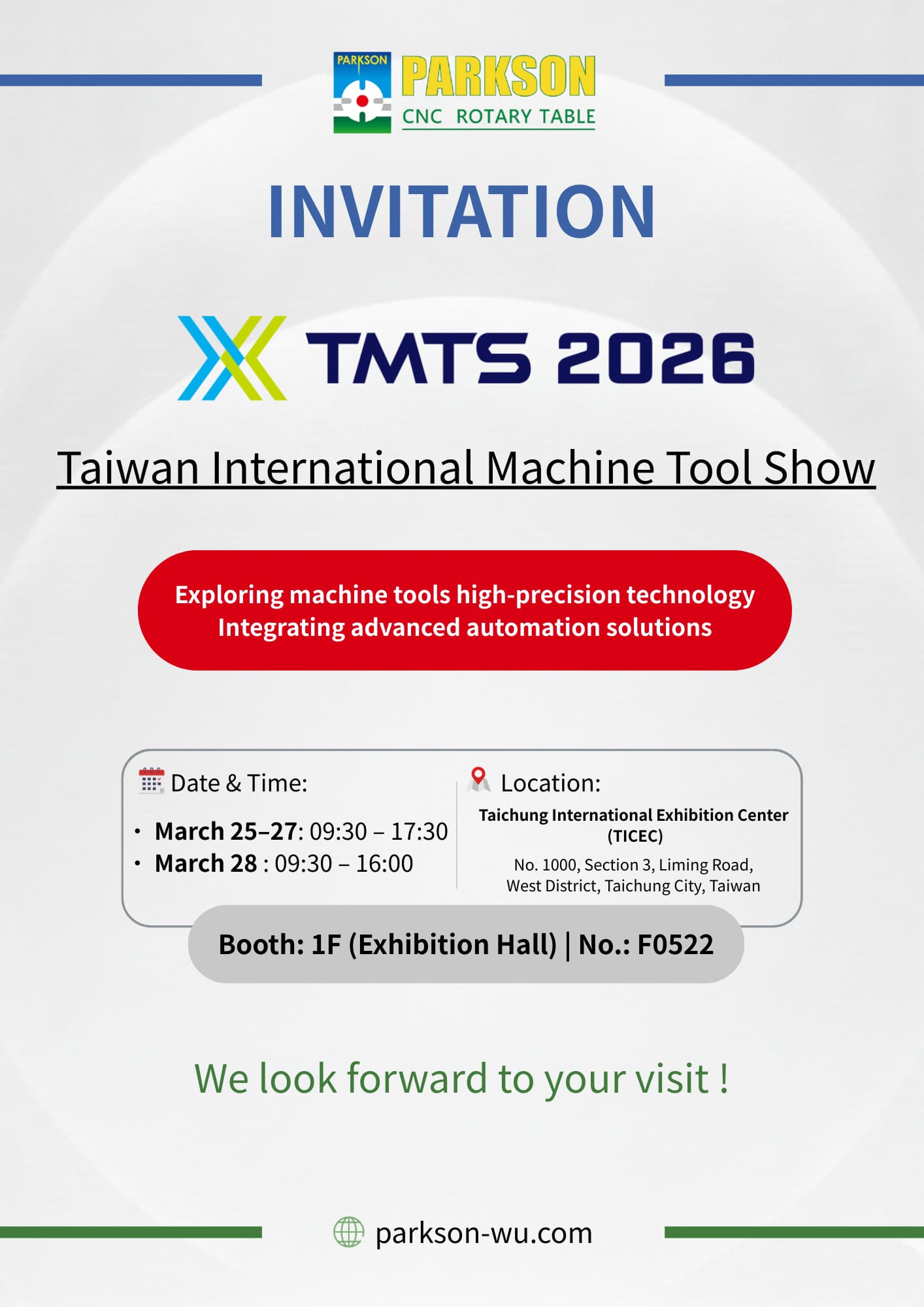 PARKSON cordially invites you to the 2026 Taiwan International Machine Tool Show (TMTS). Join us to experience the core technologies driving high-performance machining and automation.